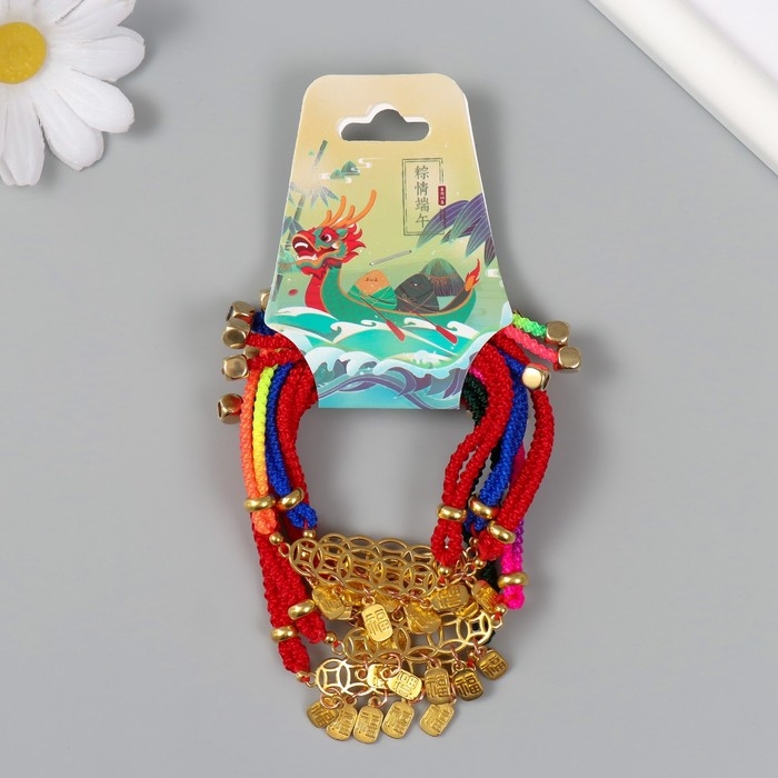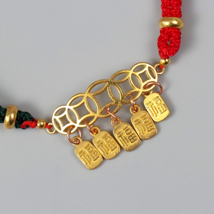 Браслет фен-шуй "Монетки и иероглифы" регулируемая длина