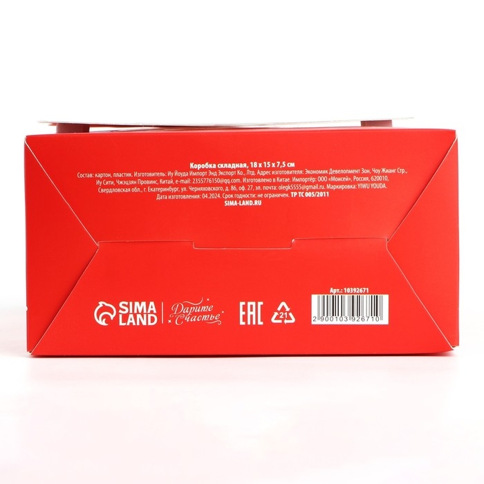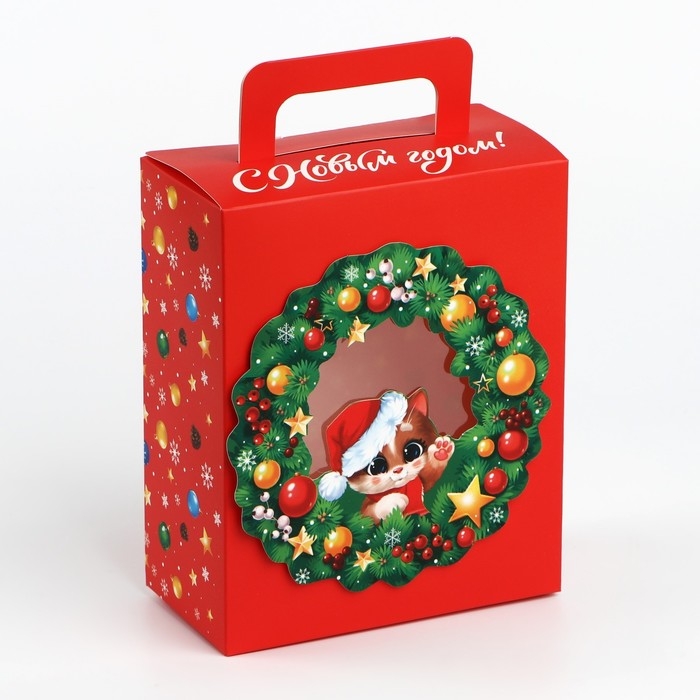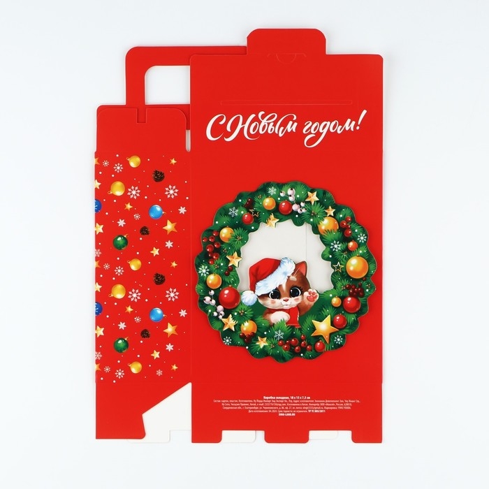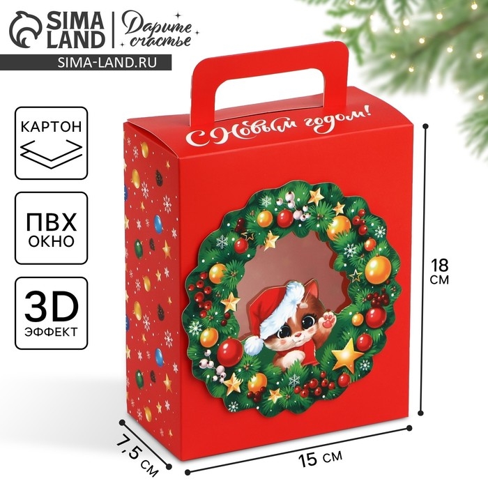 Подарочная коробка новогодняя новогодняя складная с 3D эффектом «Новогодний венок», 18 x 15 x 7.5 см, Новый год