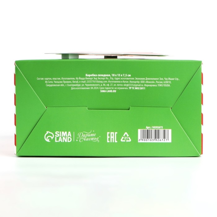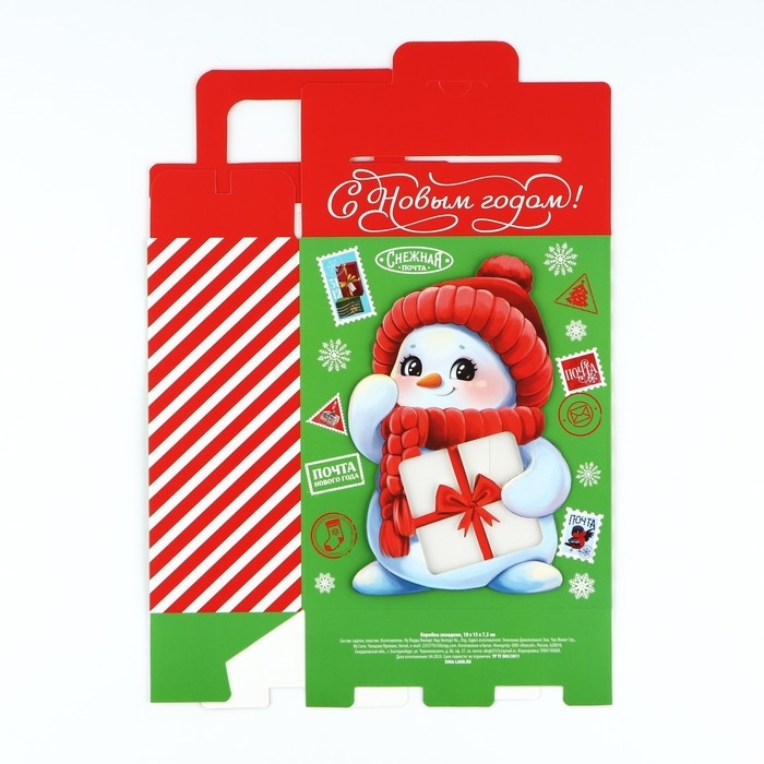 Коробка подарочная новогодняя складная с 3D эффектом «Снеговичок», 18 x 15 x 7.5 см, Новый год