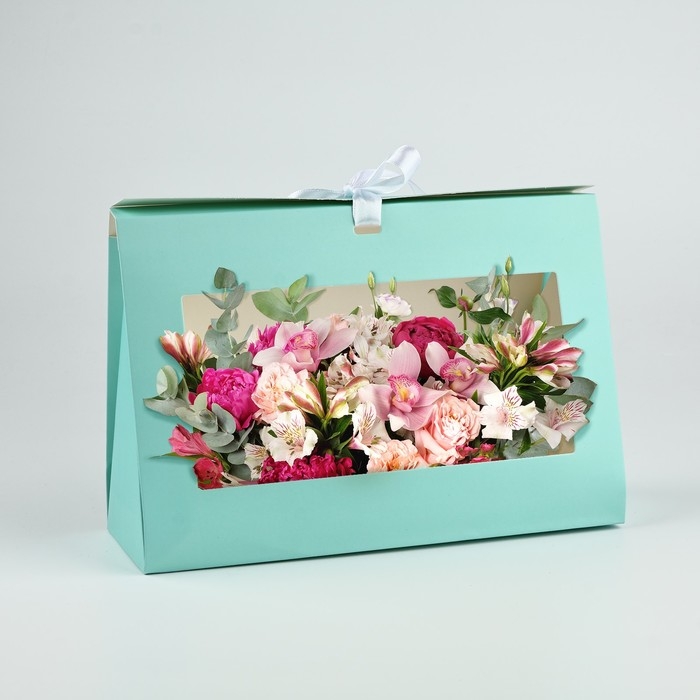 Складная коробка для цветов с окном Present, тиффани, 16 х 27 х 9 см