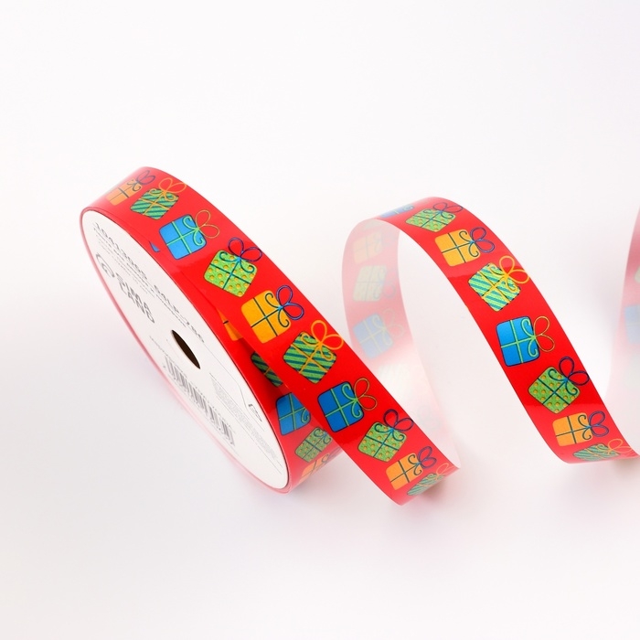 Лента для декора и подарков, "Подарки", красный, 2 см х 50 м