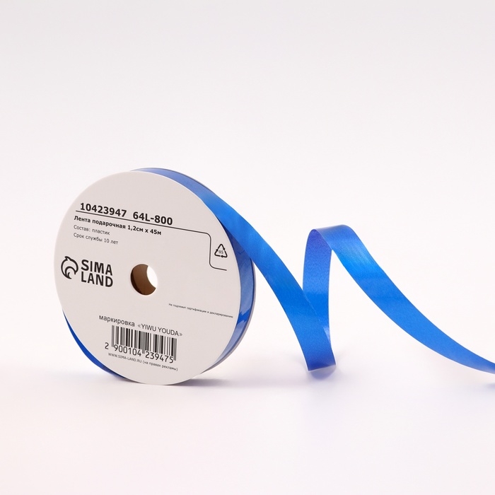 Лента для декора и подарков "Глянец", 1,2см х 45м, синяя