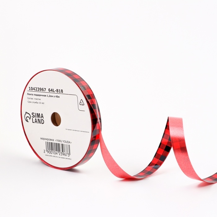 Новый год. Лента для декора и подарков новогодняя "Клетка", 1,2см х 45м.