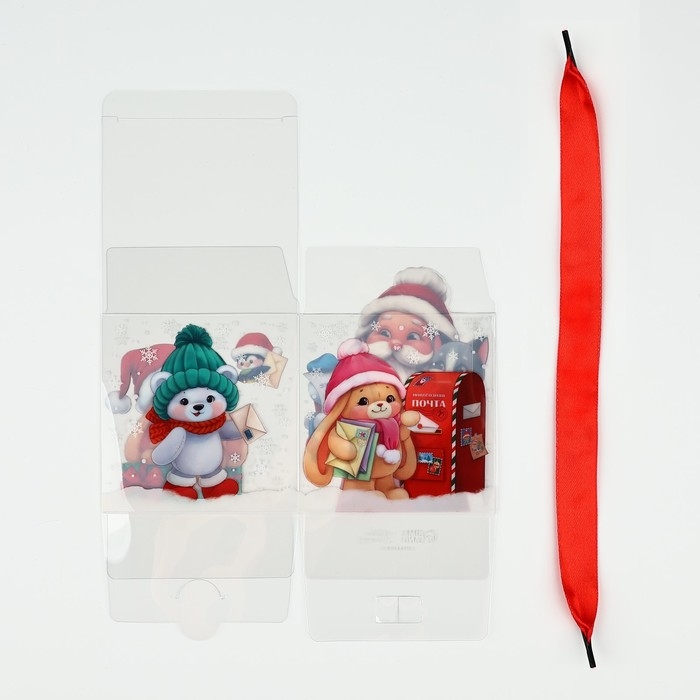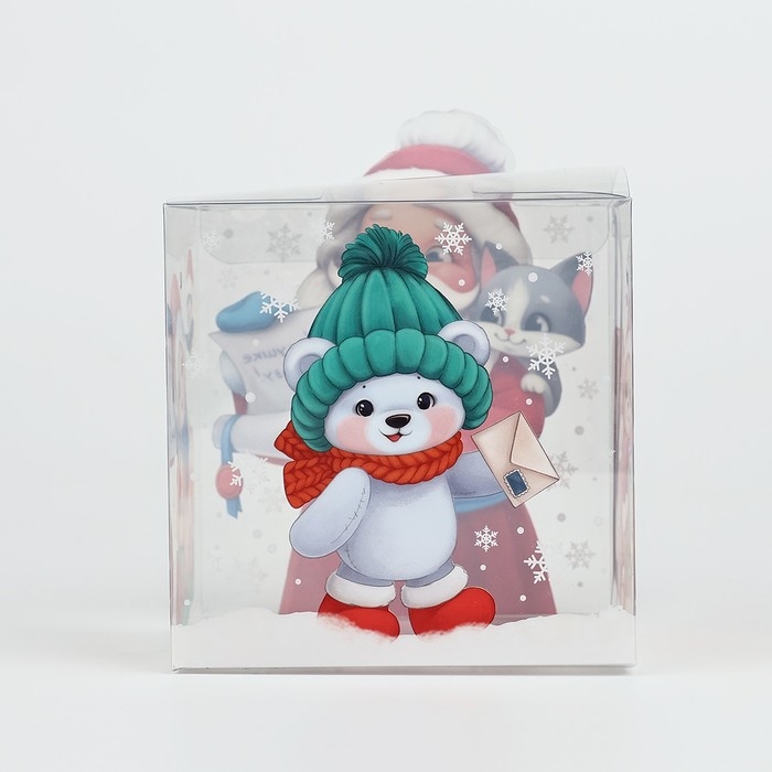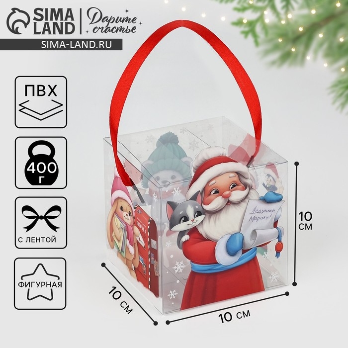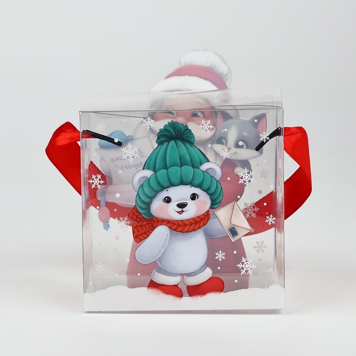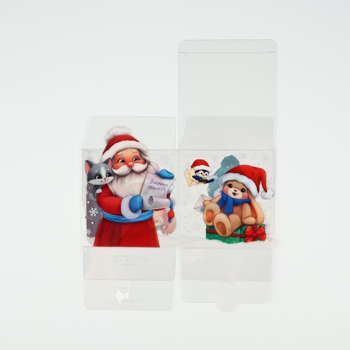 Коробка подарочная новогодняя складная ПВХ, «Дед Мороз», 10 х 10 х 10 см, Новый год