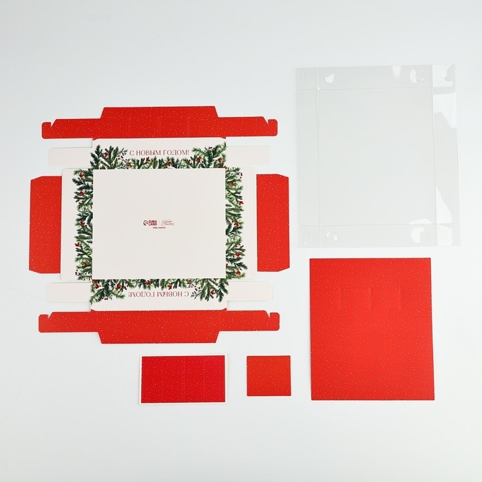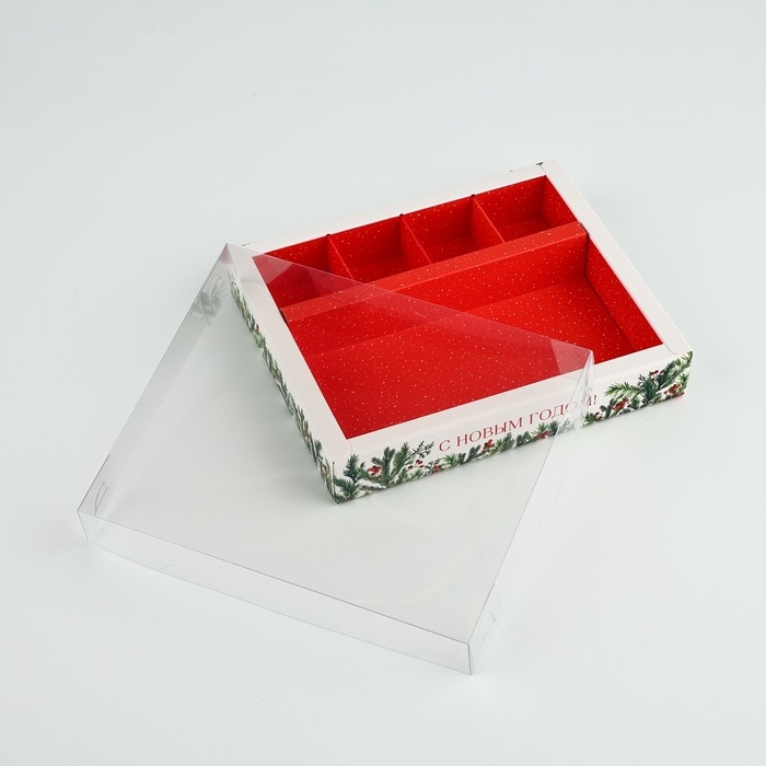 Коробка под 4 конфеты и шоколад с ячейками «Еловый аромат» 18 х 15 х 3 см, Новый год