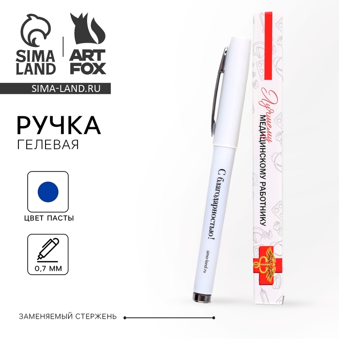 Ручка гелевая с колпачком «Лучшему медицинскому работнику», пластик, синяя паста 0.7 мм