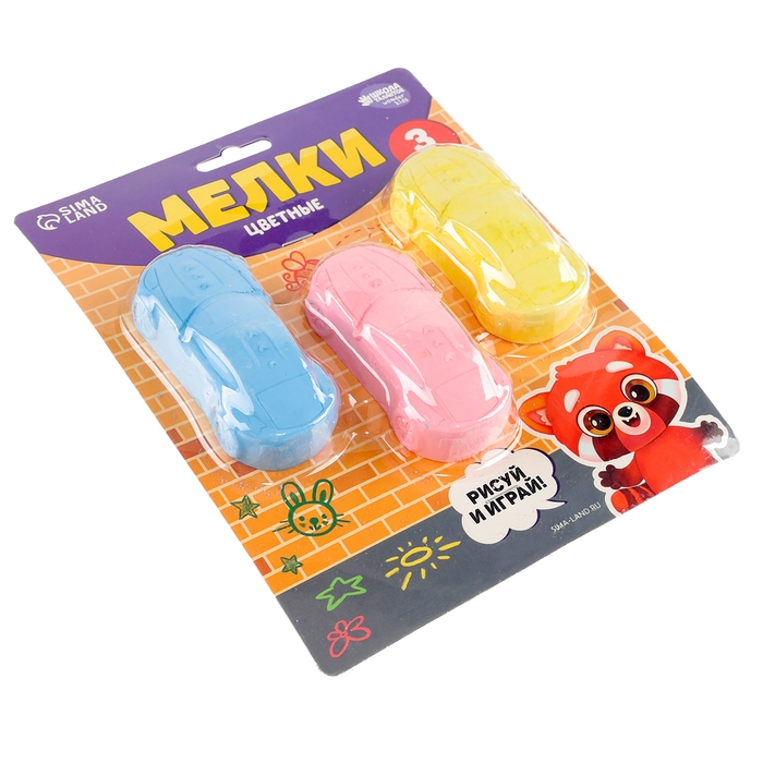 Мелки цветные для рисования на асфальте «Машинка», 3 шт