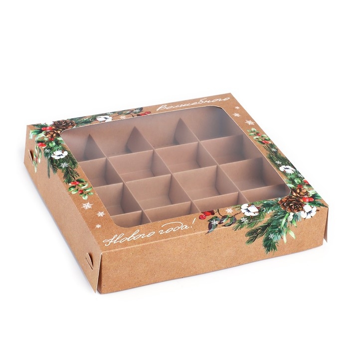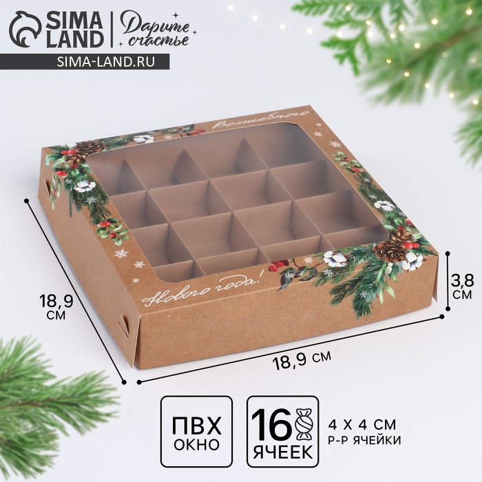 Коробка под 16 конфет «Новогодние моменты», 18.9 х 18.9 х 3.8 см, Новый год
