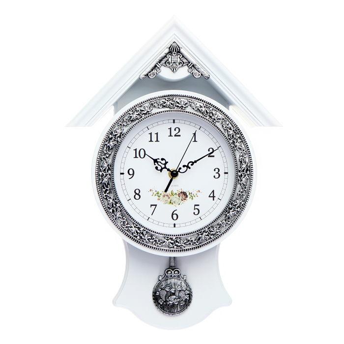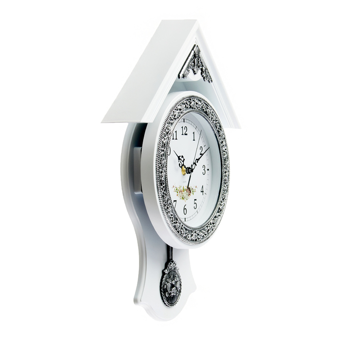 Часы настенные, серия: Маятник, "Белый домик", дискретный ход, 40 х 29 см, d-16 см