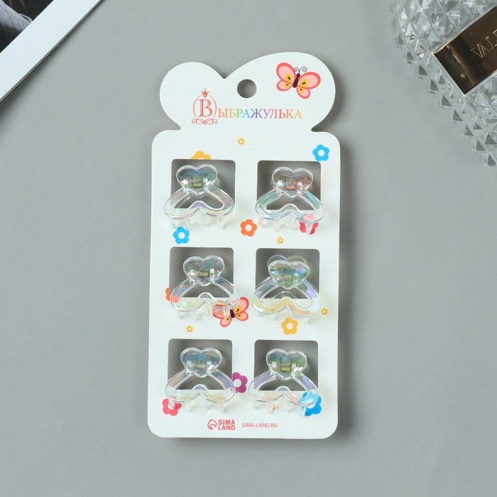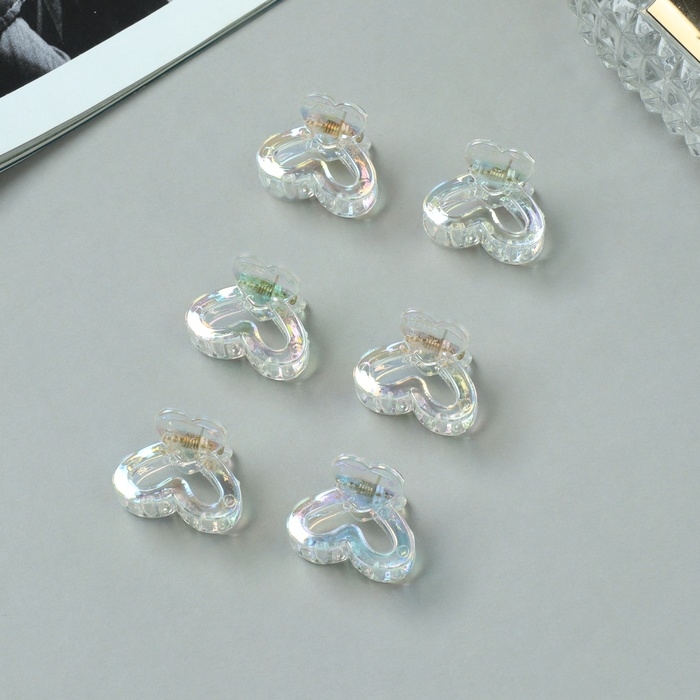 Краб для волос "Аванти" (набор 6 шт) сердце двойное, 2,5 см, прозрачный