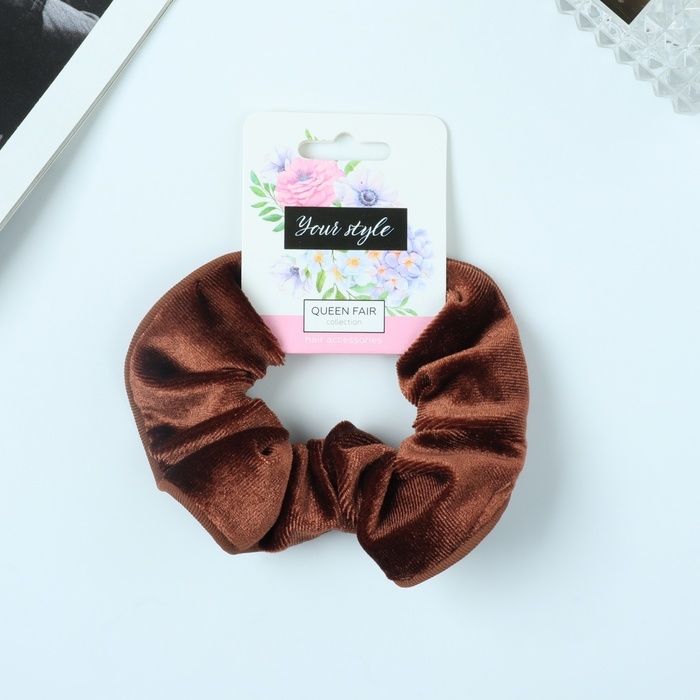 Резинка для волос "Орбита" классика бархат, 10 см, коричневый