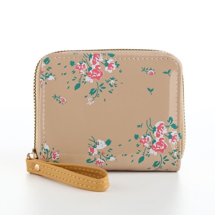 Кошелёк женский на молнии, лакированный, цвет бежевый