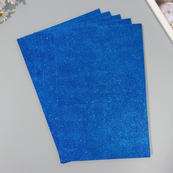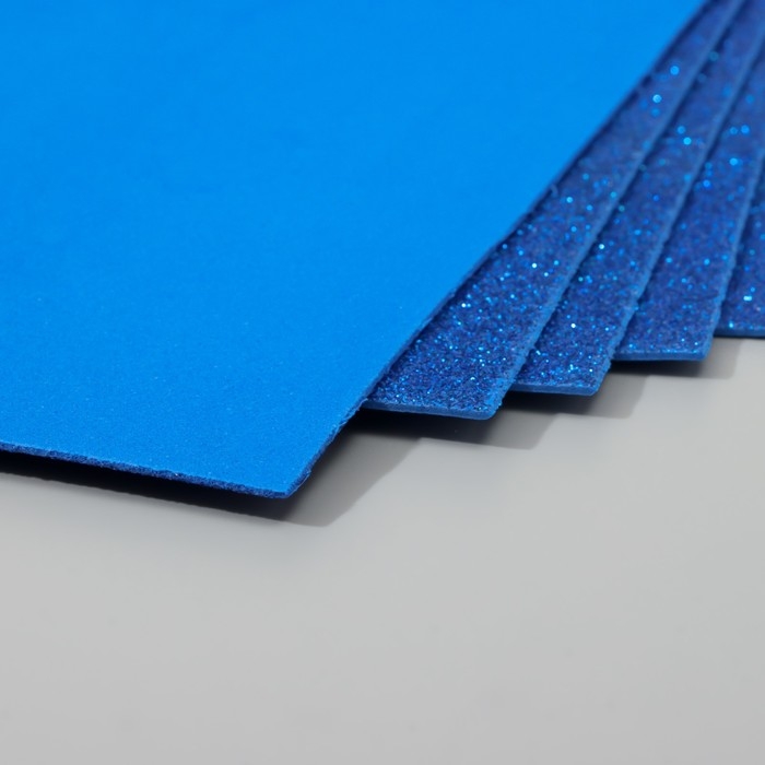 Набор глиттерного фоамирана (5 листов) 2 мм, 20х30 см, синий