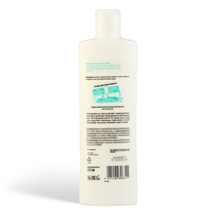 Состав: Aqua (Water, Eau),Sodium Laureth Sulfate,Cocamidopropyl Betaine,Sodium Chloride,Glycol Distearate,Hydrogenated Castor Oil,Parfum (Fragrance),Yogurt,PEG-40 Hydrogenated Castor Oil,PEG-7 Glyceryl Cocoate,Glyceryl Laurate,Glyceryl Oleate,Sodium Benzoate,Sodium Salicylate,Citric Acid,Sodium Hydroxide,Hexyl Cinnamal,Benzyl Alcohol,Geraniol,Citronellol