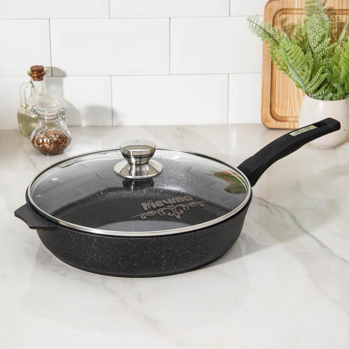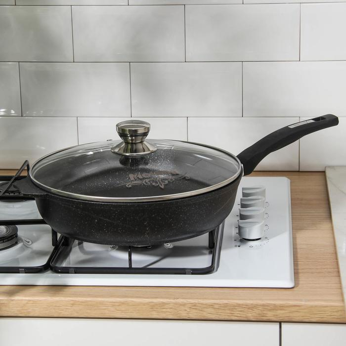Сковорода «Гранит Star», d=30 см, стеклянная крышка, антипригарное покрытие, тёмно-синий