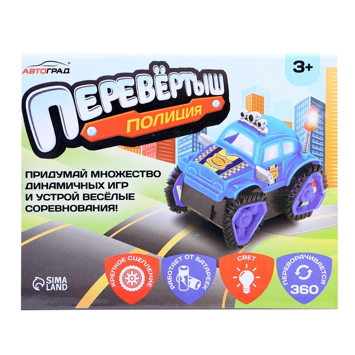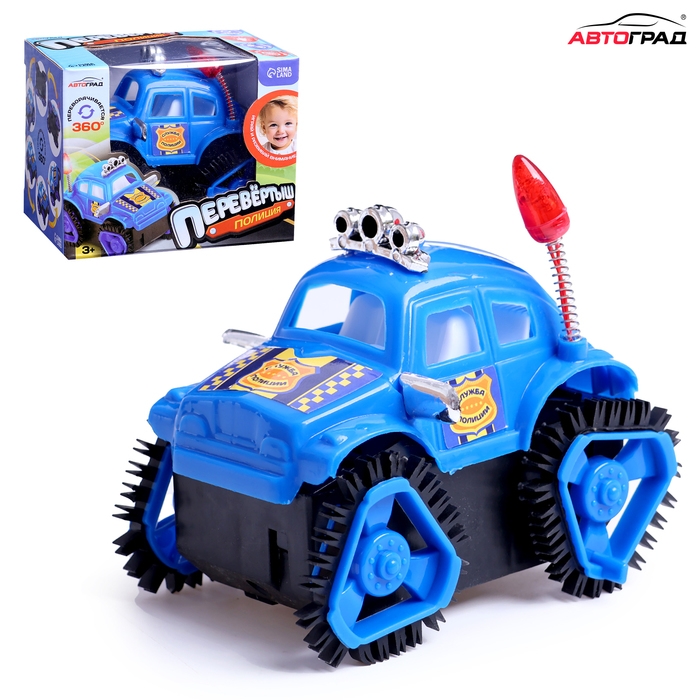 Машинка-перевертыш — это транспорт, спроектированный так, что он может продолжать движение даже после того, как перевернётся. Большие колёса помогают игрушке преодолевать небольшие препятствия. Если она упрётся в стену, то просто перевернётся и продолжит ехать дальше.