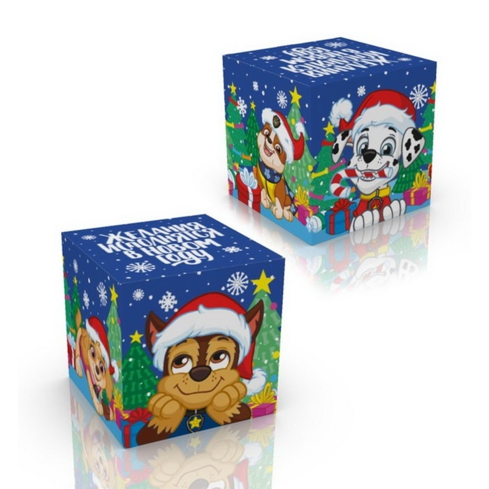 Новый год. Коробка подарочная складная "Желания исполнятся в Новом году!", 20х20х20 см, Щенячий патруль