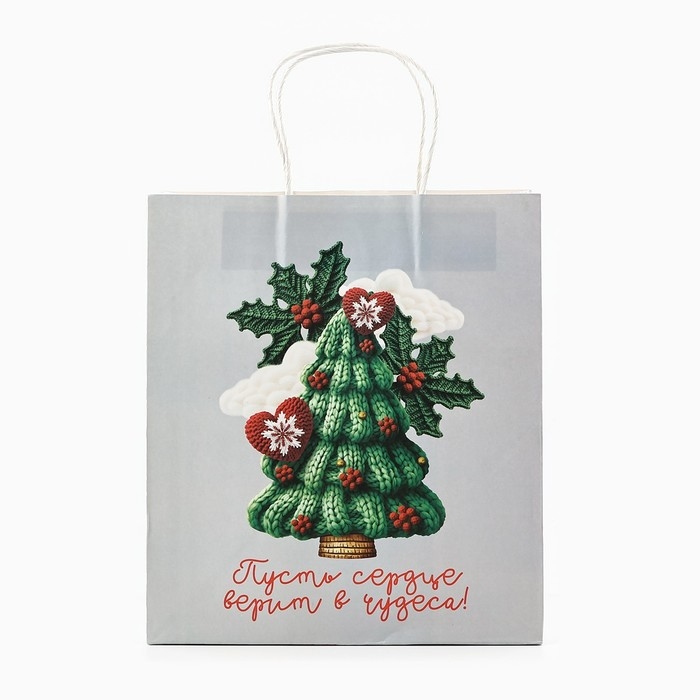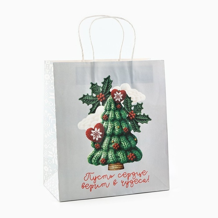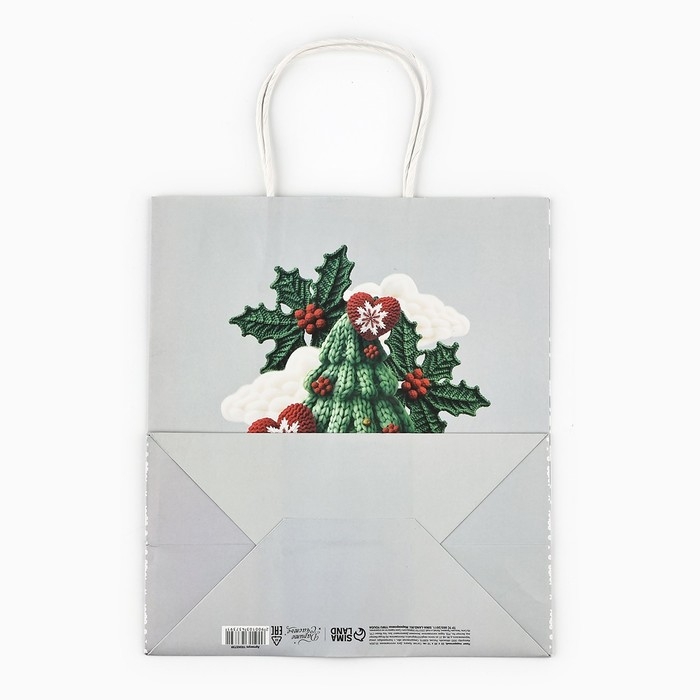 Пакет подарочный новогодний «Чудеса», ёлка, белый крафт, 22 х 25 х 12 см , Новый год