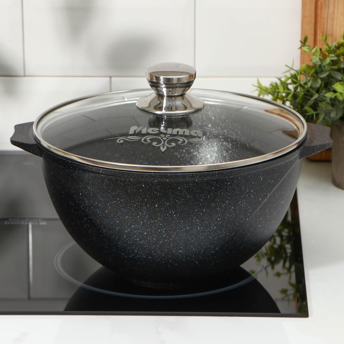 Казан «Гранит Stаr», 4 л, стеклянная крышка, литые ручки, антипригарное покрытие, тёмно-синий