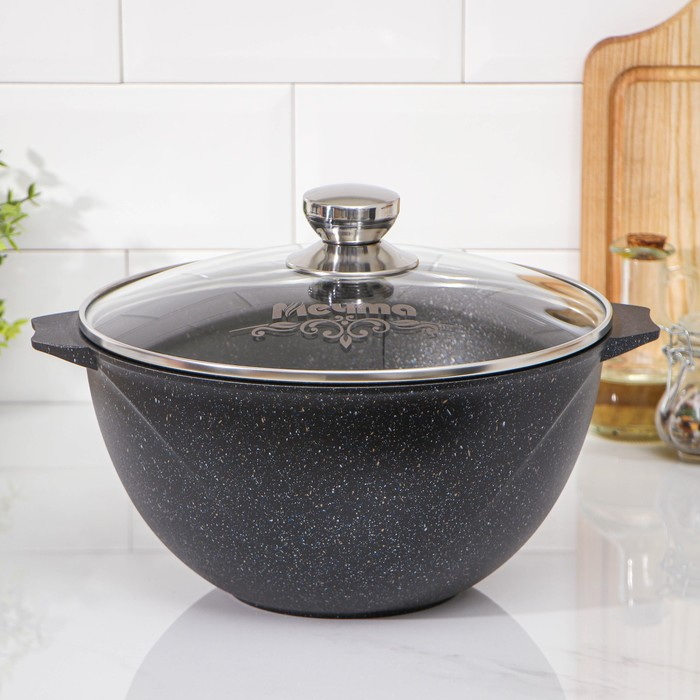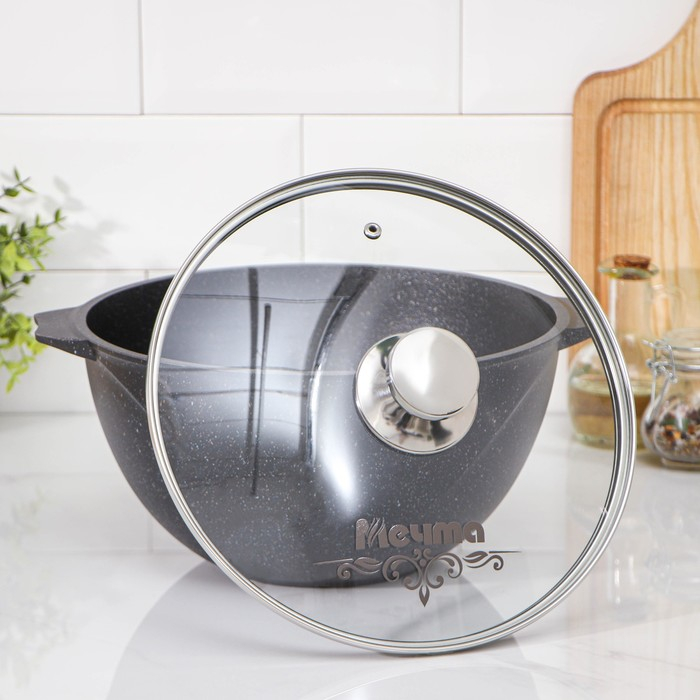 Казан «Гранит Stаr», 5 л, стеклянная крышка, литые ручки, антипригарное покрытие, цвет серый