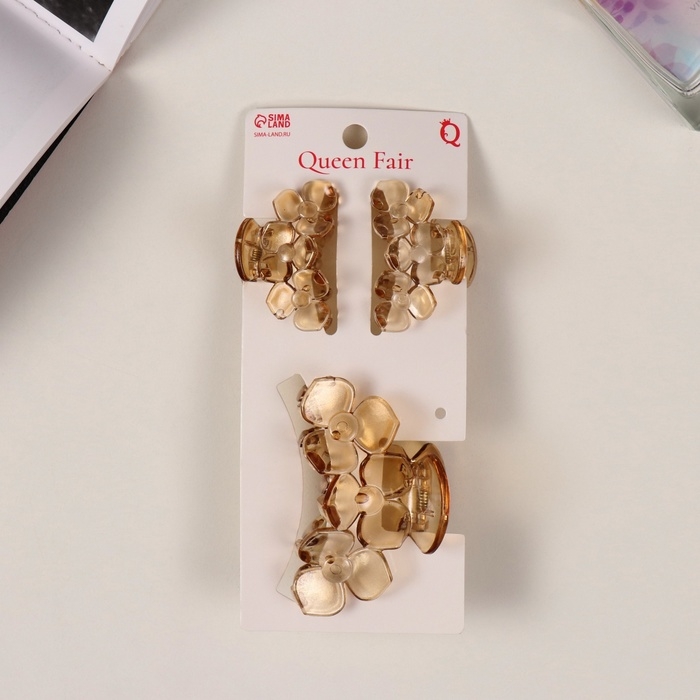 Краб для волос "Флориана" (набор 3 шт) цветы, 6,5 и 4 см, светло-коричневый