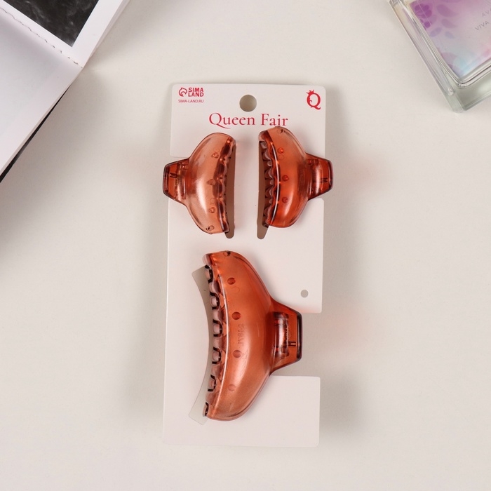Краб для волос "Флориана" (набор 3 шт) дуга, 6,5 и 4 см, коричневый