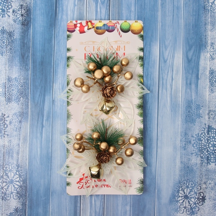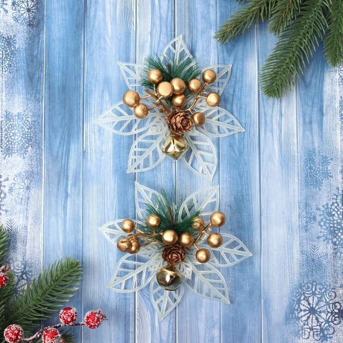 Украшение ёлочное "Праздничные цветы" (набор 2 шт) бубенчики, 13 см, белый