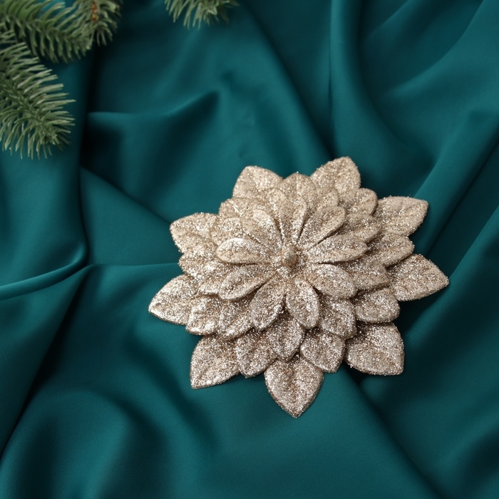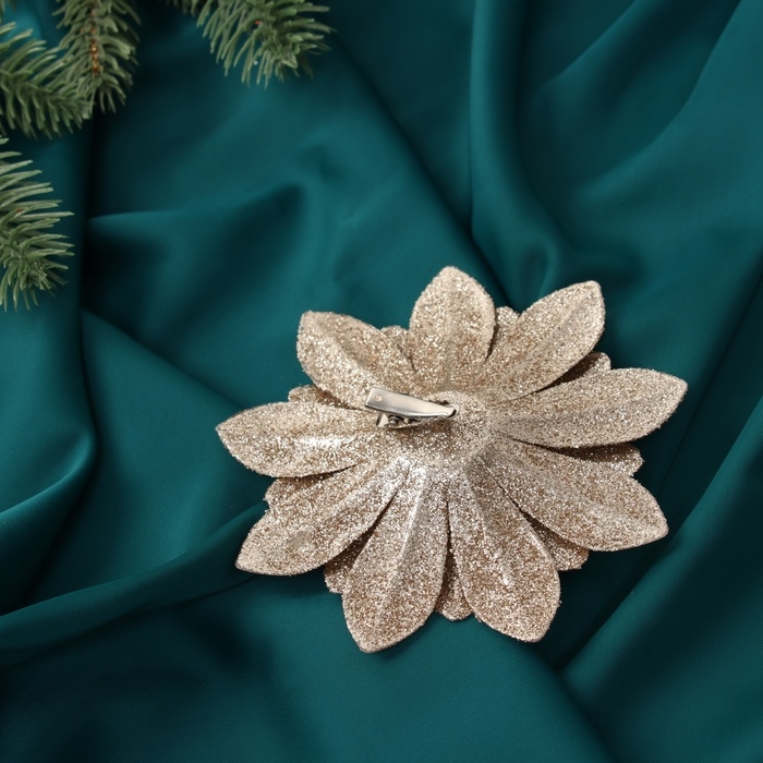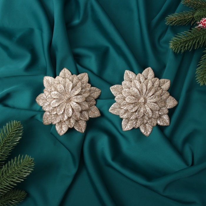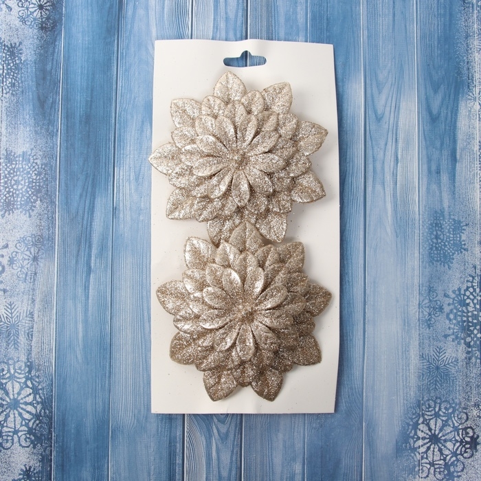 Украшение ёлочное "Цветы многослойные блеск" (набор 2 шт) на зажимах, 11х11 см, золото