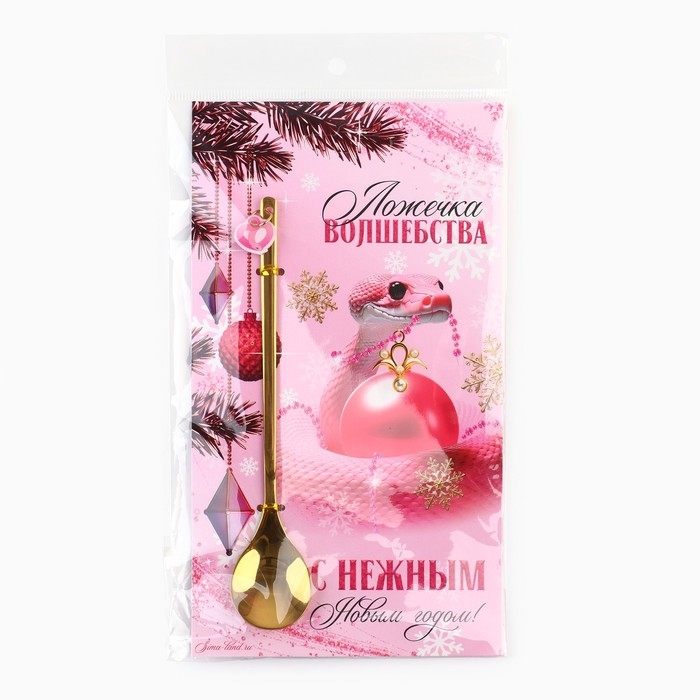 Ложка новогодняя с пластиковым подвесом «Новый год: С нежным новым годом», 14,8 х 2,7 см