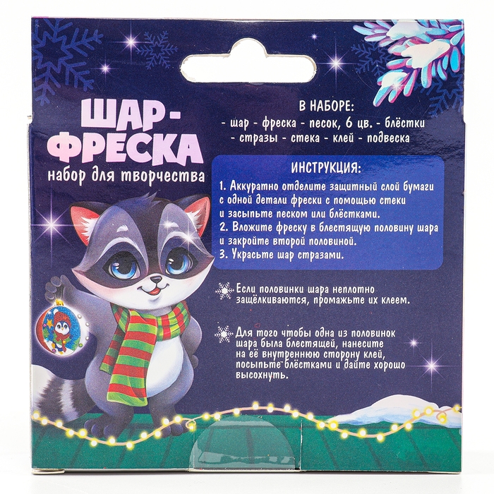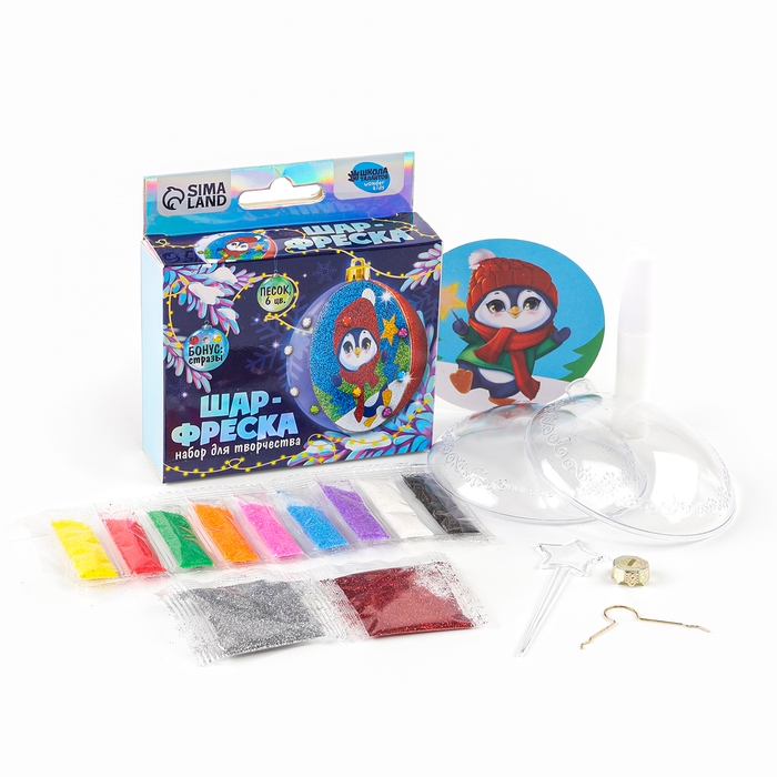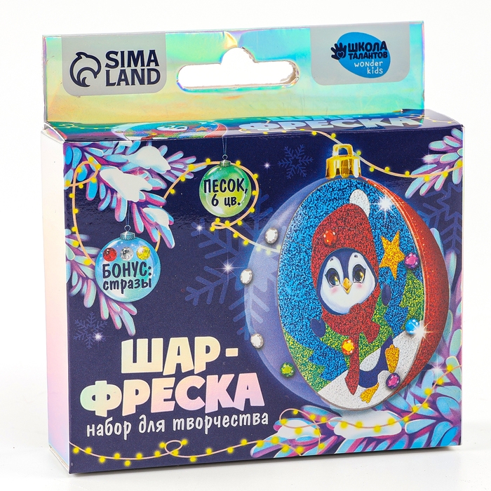 Ёлочный шар - фреска своими руками на новый год «Пингвин», новогодний набор для творчества