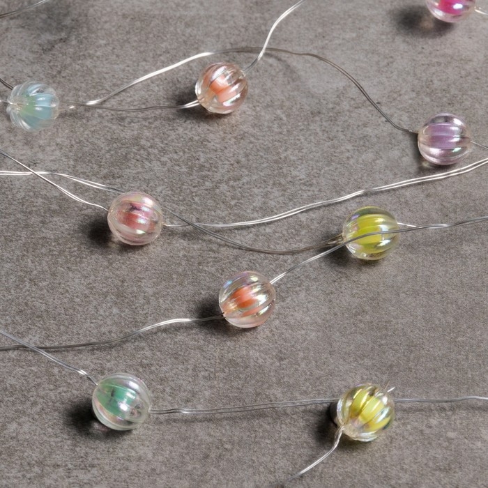 Гирлянда «Нить» 2 м роса с насадками «Шарики», IP20, нить серебристая, 20 LED 4.6 В, батарейки AG13x3 (в комплекте), 3 режима, свечение тёплое белое