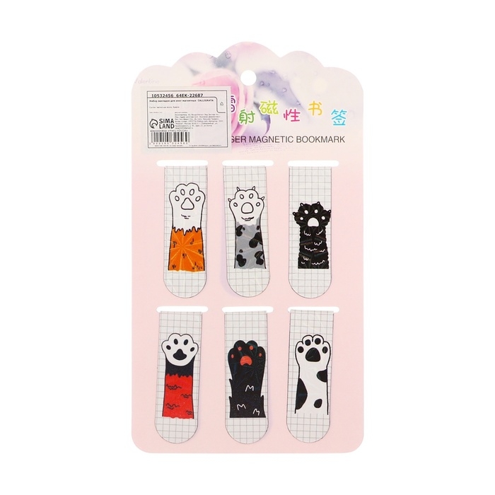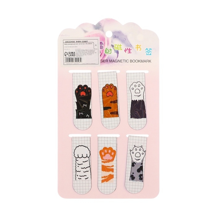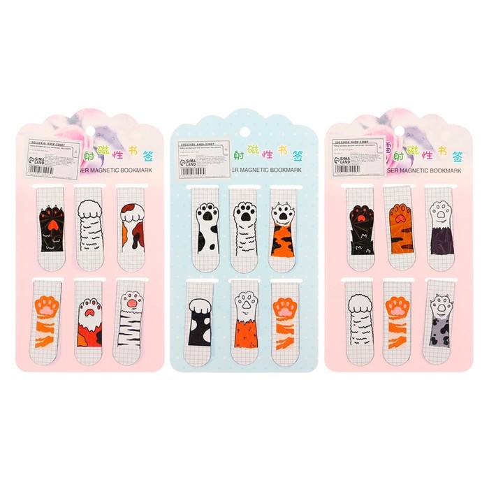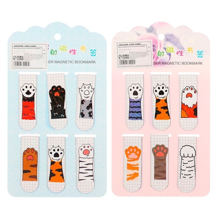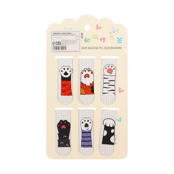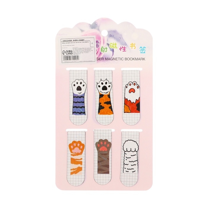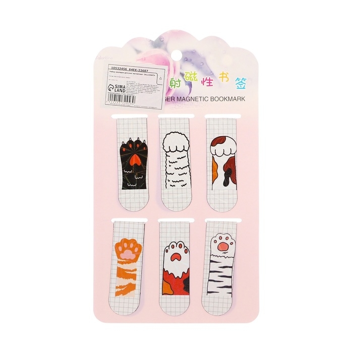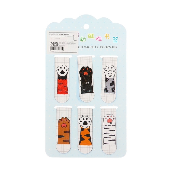 Набор закладок магнитных для книг 6 штук Лапки 60*19мм МИКС CALLIGRATA