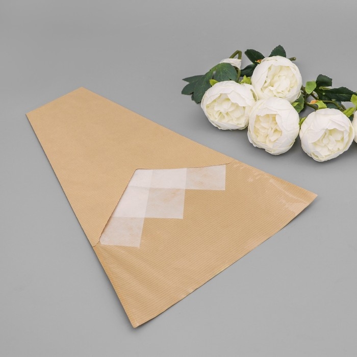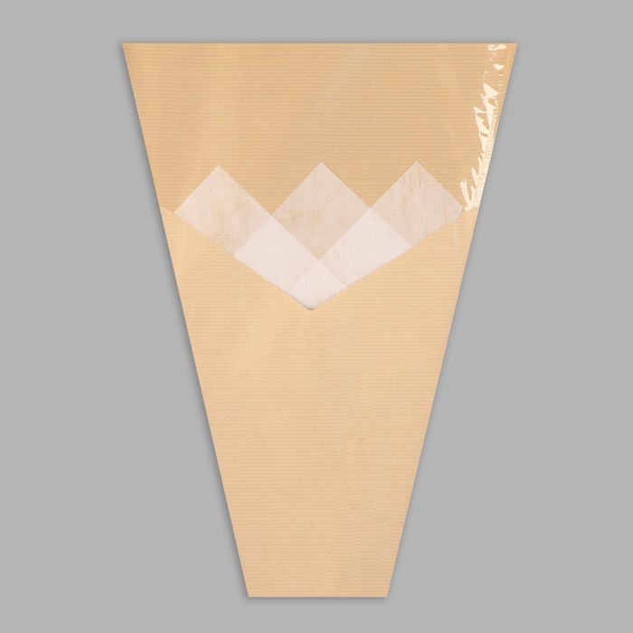 Пакет конус для цветов, крафт+ пленка, 30+11х42см±1см, натуральный