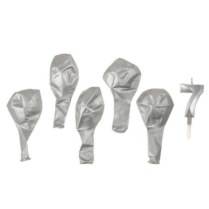 Свечи для торта + 5 шаров, цифра 7, серебро