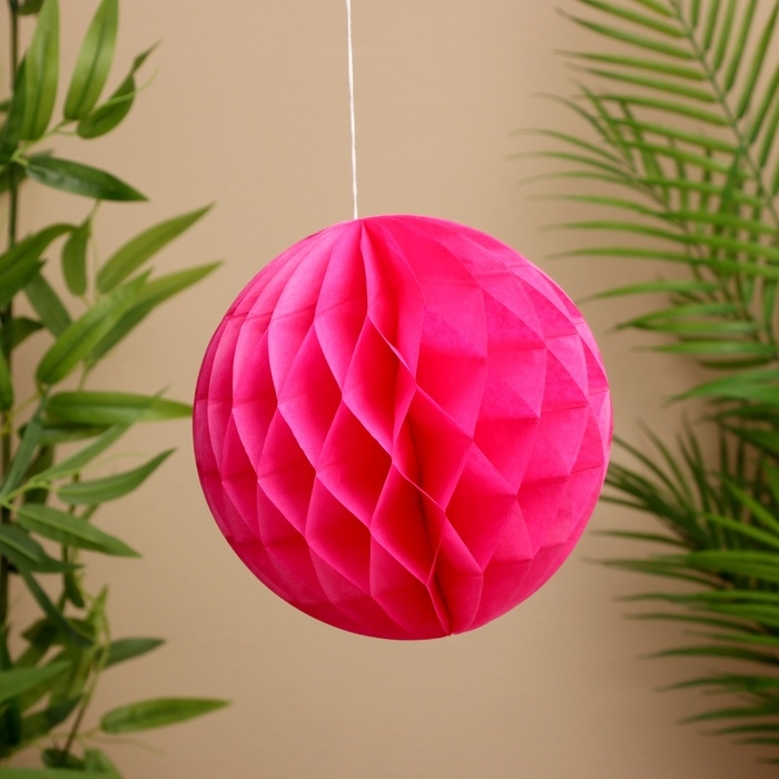Шар бумажный декоративный, диаметр 20 см, цв. т.розовый