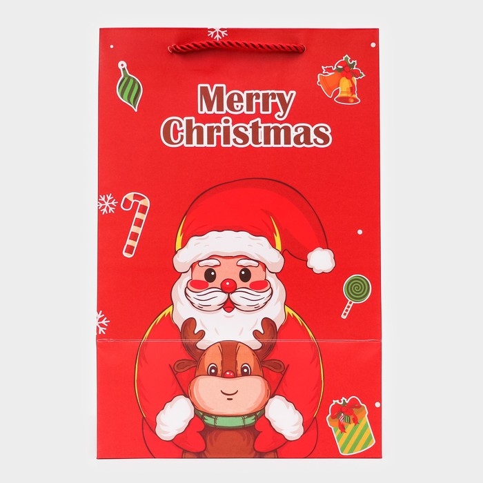 Яркий и красочный дизайн с новогодними мотивами придает пакету праздничный и жизнерадостный вид. Это делает его идеальным выбором для использования в качестве подарочной упаковки на различные зимние праздники, такие как Новый год или Рождество.