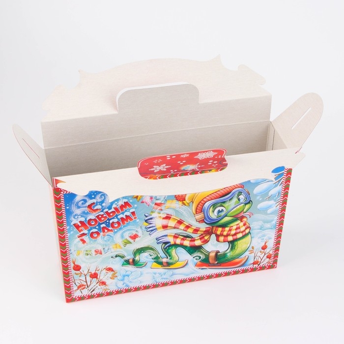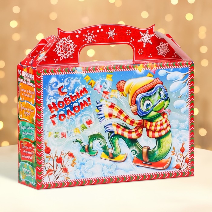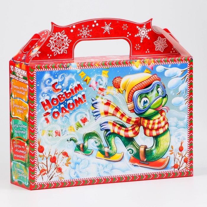 Новый год. Коробка подарочная новогодняя Змейка-спортсменка 26 х 23 х 7 см.