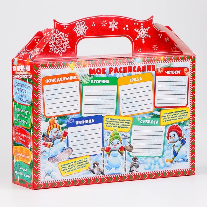 Коробка выполнена из качественных материалов, которые обеспечивают сохранность содержимого. Она имеет яркий и красочный дизайн, который отражает атмосферу Нового года.