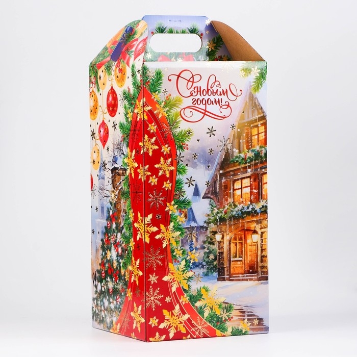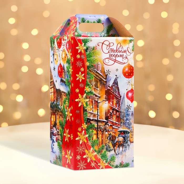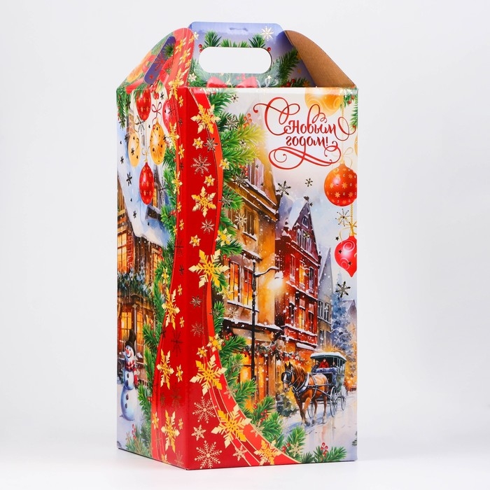 Новый год. Коробка подарочная новогодняя Ларец Новогодний город 16,2 х 37,7 х 16 см.