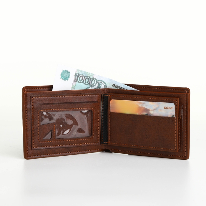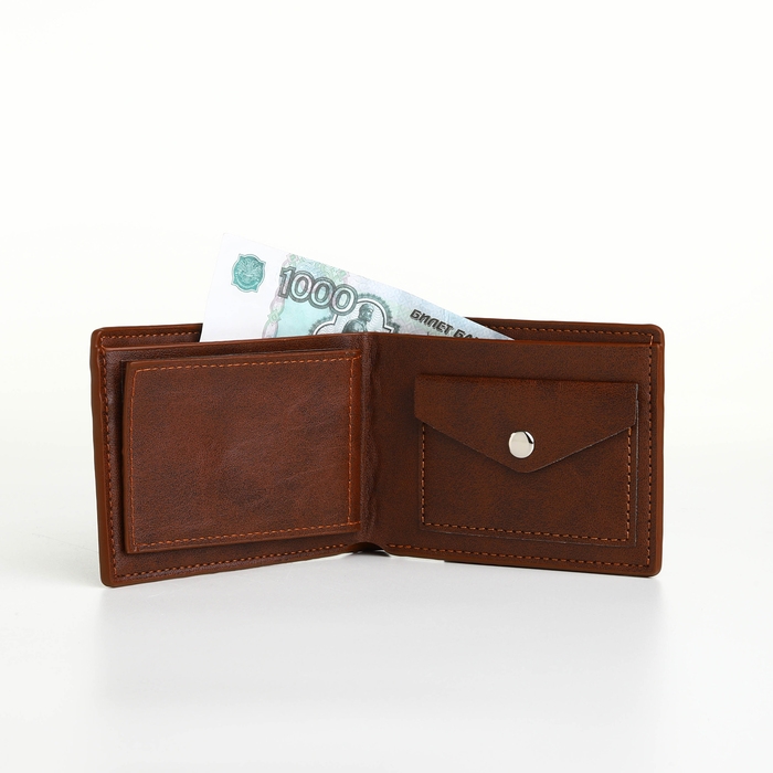 Портмоне мужское без застёжки, отдел для карт, монет, цвет коричневый