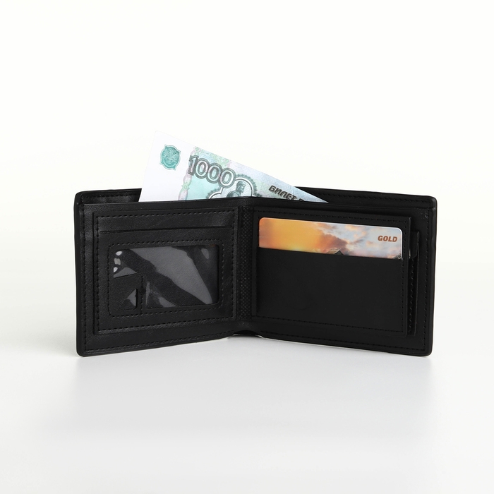 Портмоне мужское без застёжки, отдел для карт, монет, цвет чёрный