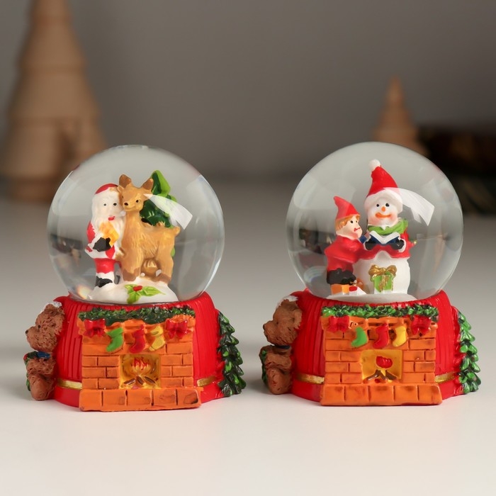 Сувенир полистоун водяной шар "Дед Мороз/Снеговик у камина" МИКС 5,5х5х6,5 см