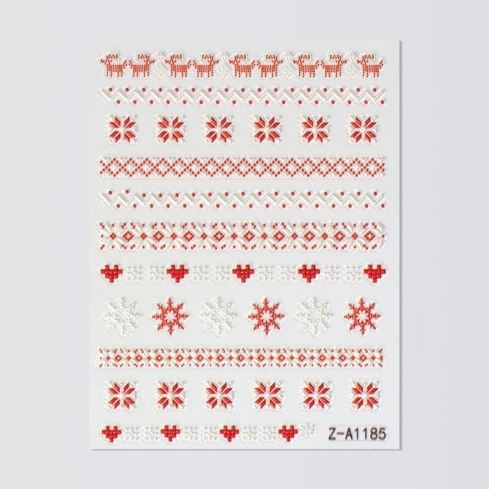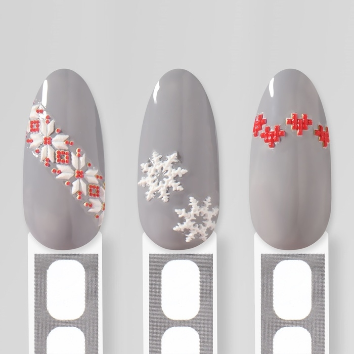 Новый год! Наклейки для ногтей «Зимние узоры», объёмные, цвет красный/белый
