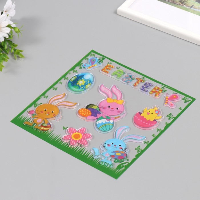 Наклейка силикон на стекло "Пасхальные друзья" 19,5х19,5 см 7882176