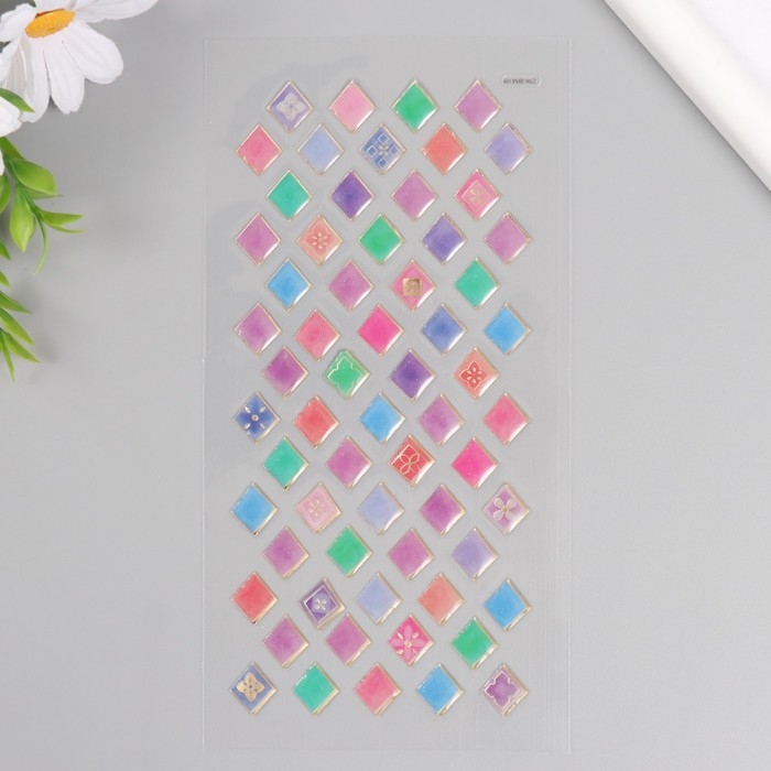 Наклейки для творчества пластик "Разноцветная плитка ромбы" 9,3х20,4 см