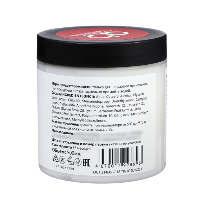 Состав: Aqua, Cetearyl Alcohol, Glycerin, Cetrimonium Chloride, Stearamidopropyl Dimethylamine, Caprylic/Capric Triglyceride, Amodimethicone, Trideceth-12, Ceteareth-20, Parfum, Glycine Soya Oil, Lycium Barbarum Fruit Extract, Litchi Chinensis Fruit Extract, Polyquaternium-10, Citric Acid, Methylchloroisothiazolinone, Methylisothiazolinone.