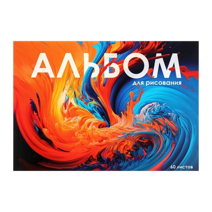 Альбом для рисования А4, 60 листов на склейке "Краски", обложка мелованный картон, твёрдая подложка, блок офсет 100г/м2