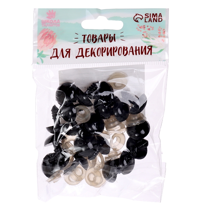 Глаза винтовые с заглушками, набор 20 шт., размер 1 шт. — 1,4 см, цвет чёрный