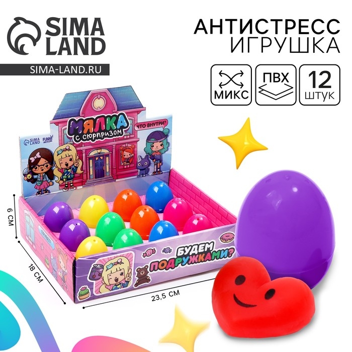 Антистресс сквиш мялка с сюрпризом «Сердце» в яйце, в шоубоксе