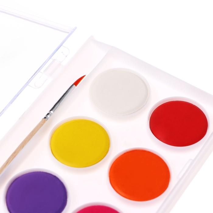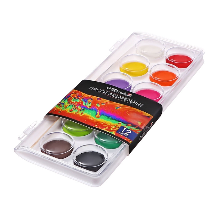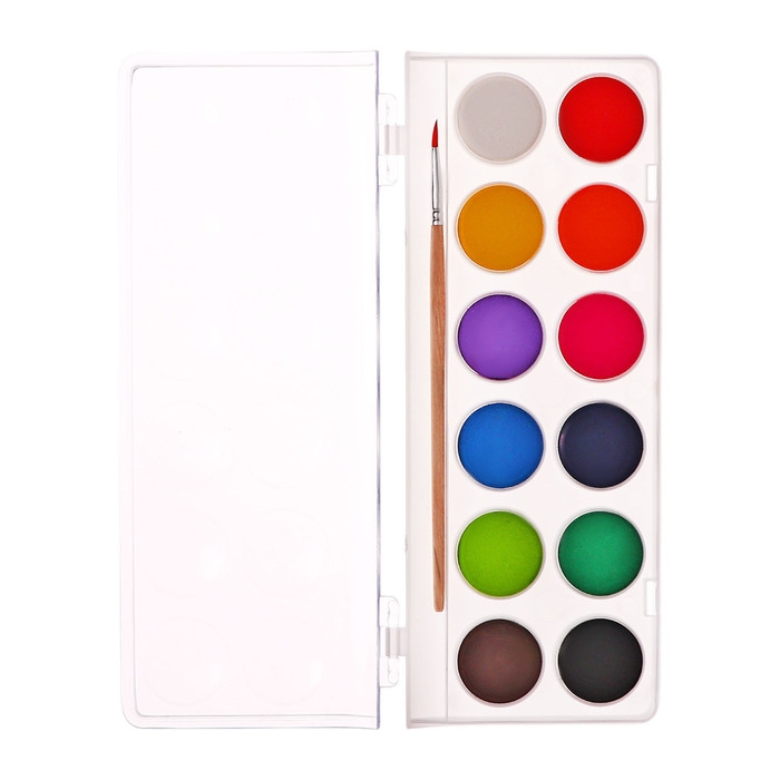Краски акварельные, в кюветах, с кистью, 12 цветов